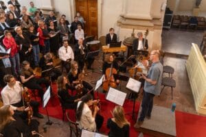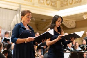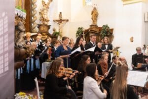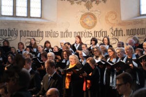 Další spoluprací, která se díky Slavnostním koncertům podařila navázat, bylo propojení dvou tuzemských smíšených sborů, které mají na koncertních pódiích u nás i v zahraničí mnohaletou tradici. Sborové těleso čítající přes 70 zpěváků se skládalo ze členů Pěveckého sboru ČVUT a brněnského pěveckého sboru Lumír.